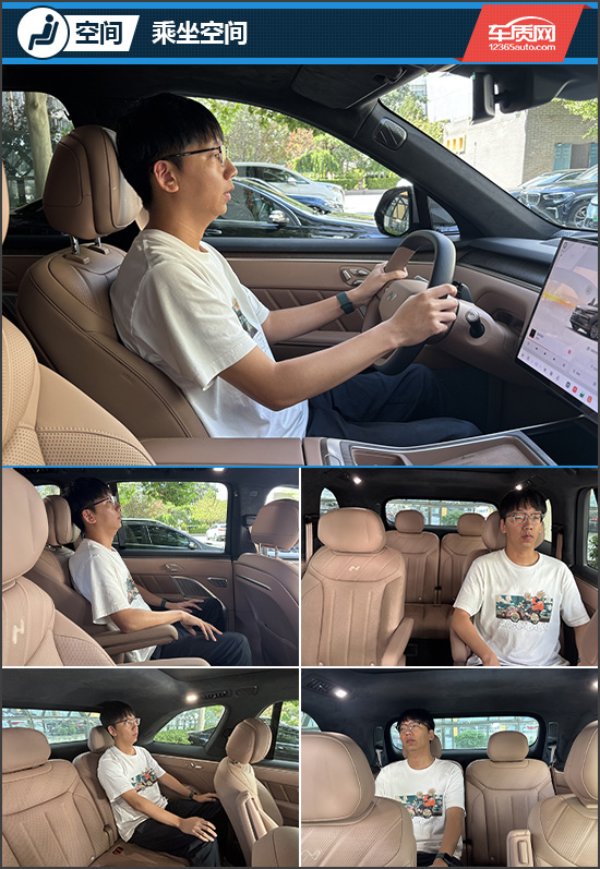 评测车采用2+2+2形式的三排6座布局,身高181cm的体验者在前排就座后,头部及横向空间表现出色。第二排为独立座椅,宽大舒适,配备独立扶手,支持多向调节,调至最靠后位置时,空间感与舒适性均达上乘水准。