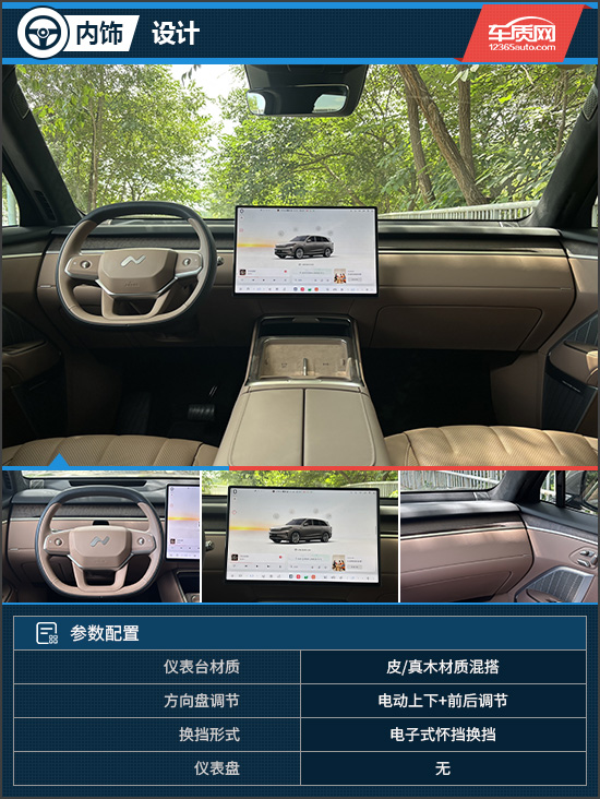 评测车搭载前后双电机,总功率440kW,总扭矩535N·m,0-100km/h加速时间为4.7s。匹配容量为85kWh的三元锂电池,CLTC纯电续航里程为570km。